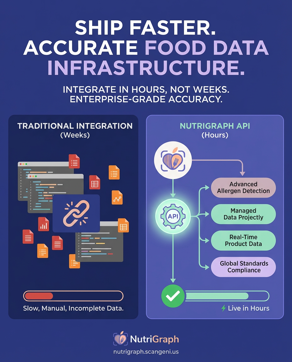 Let’s be direct. You have choices. But they are not created equal. When you evaluate a data provider, you are not just buying access to a database; you are buying a commitment to speed, accuracy, and scale. Here is how NutriGraph stacks up against the common players in the market: